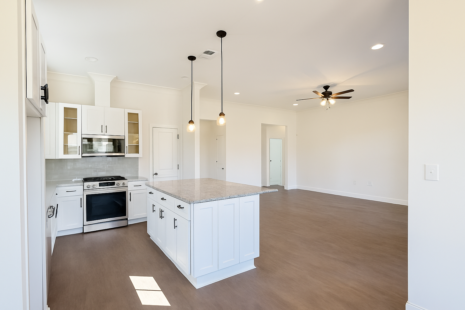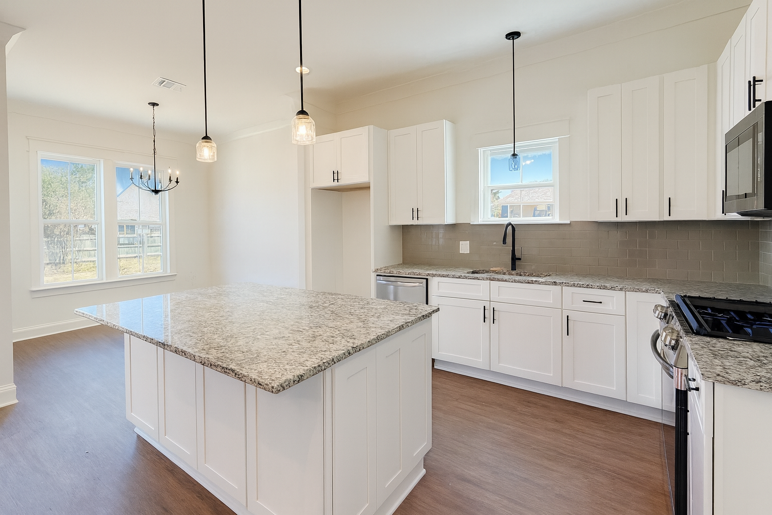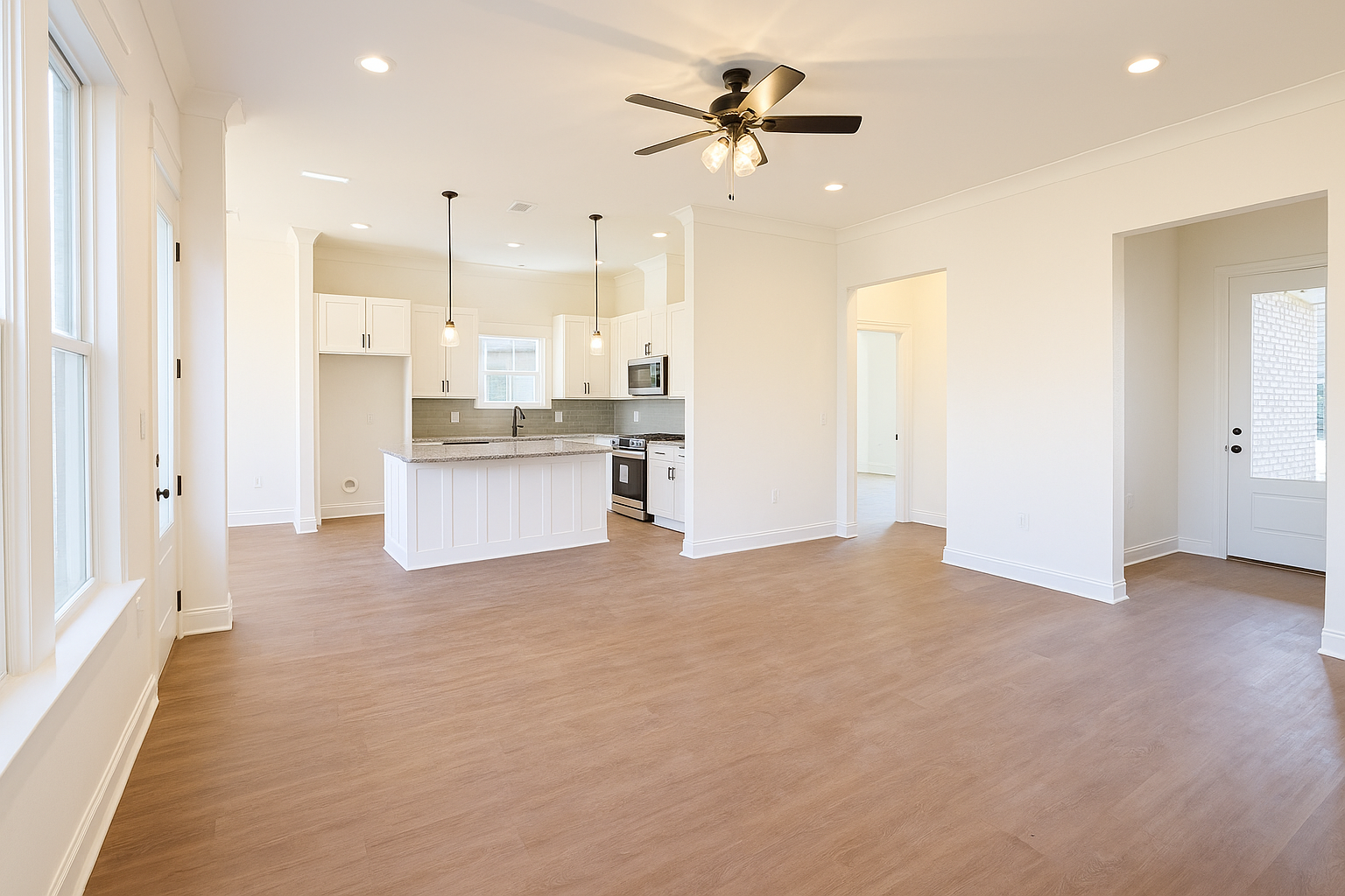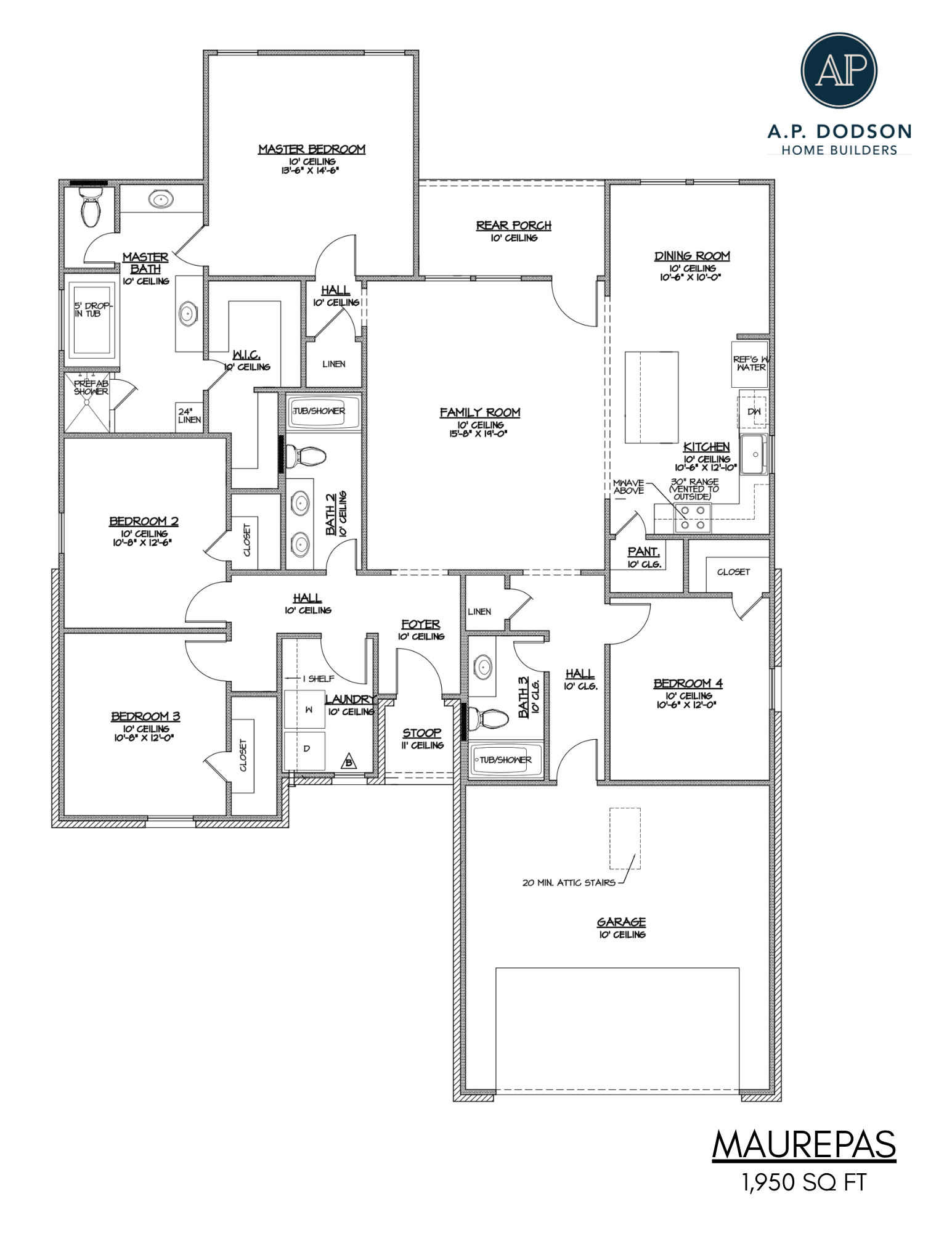 The Maurepas by A.P. Dodson is a single story home delivering 4 bedrooms and 3 bathrooms across 1,950 sq. ft. The open layout features a grand kitchen with 10′ ceilings and a large pantry that seamlessly connects to the primary living and dining areas. The generous Owner’s Suite includes a luxury bath with double vanities and a large walk-in closet. Bedrooms 2 & 3 share a full bath and Bedroom 4 and bath 3 are located on the other side of the home. This home also includes a 2-car garage, dedicated utility room, and a rear porch perfect for outdoor entertainment.